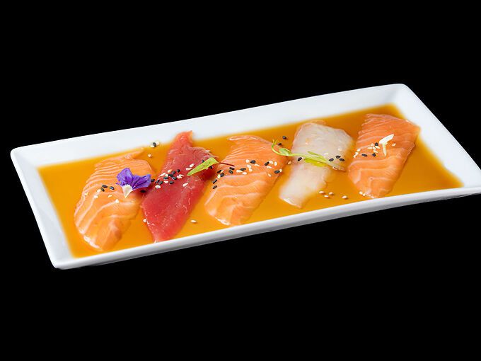 Carpaccio di pesce misto in salsa ponzu (soia limone)