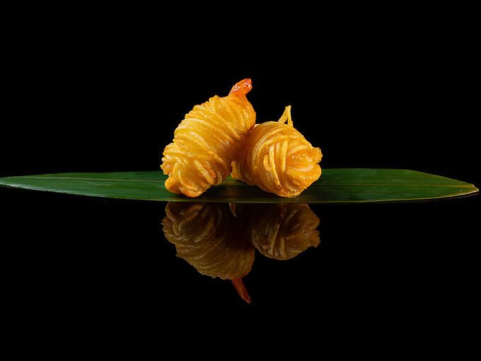 Frittura di gamberi avvolti in patata