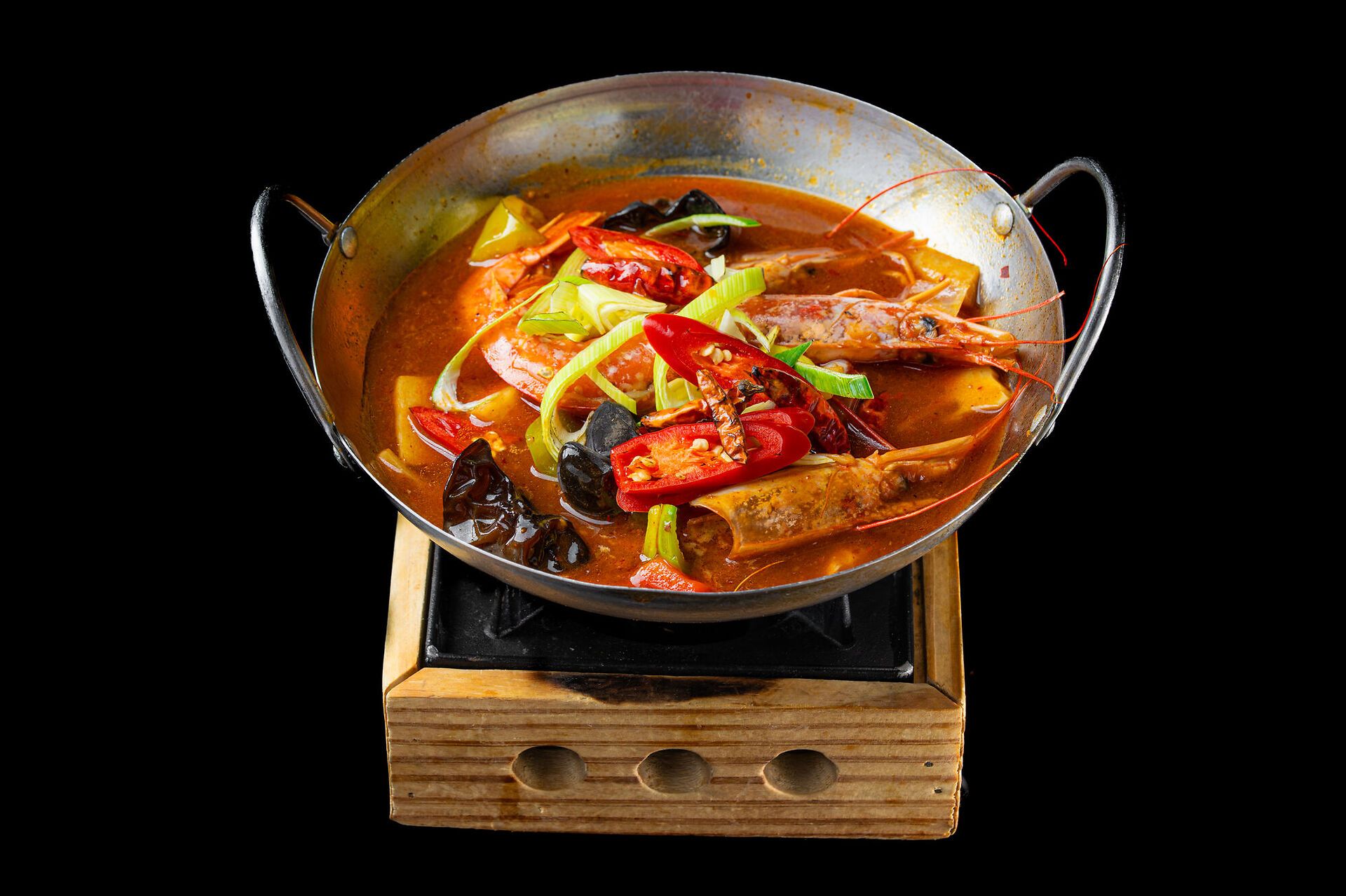 GAMBERI PICCANTI IN PADELLA DI FUOCO