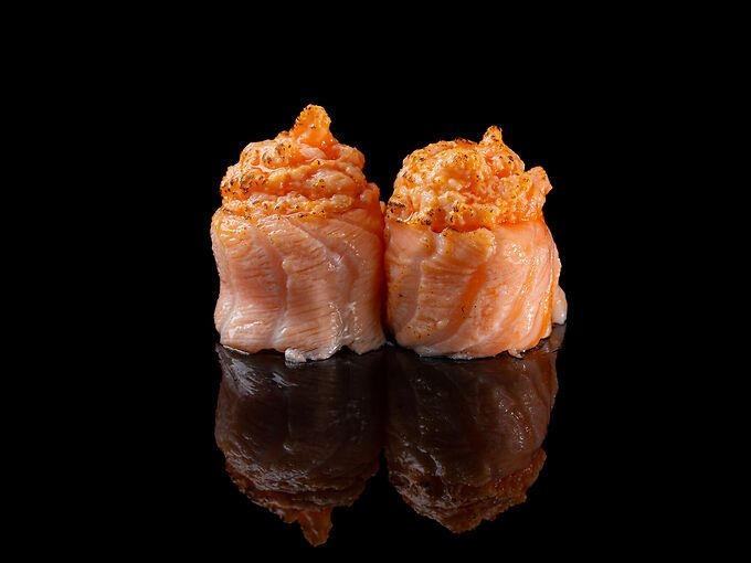 Riso, salmone scottato e salmone piccante