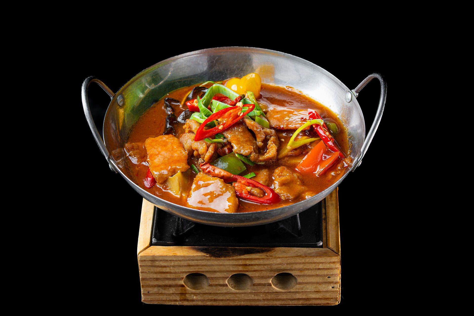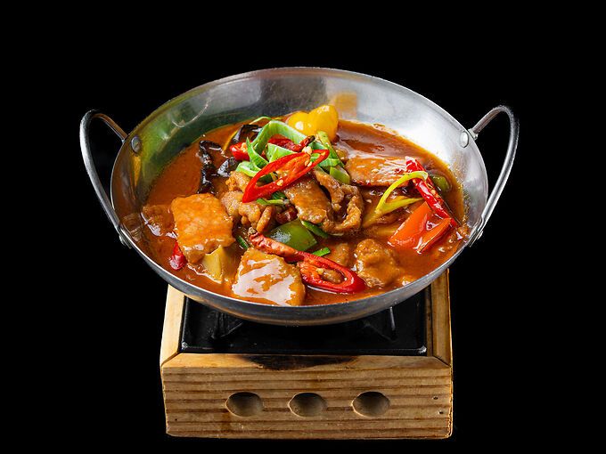 Manzo piccante in padella di fuoco