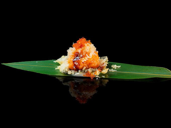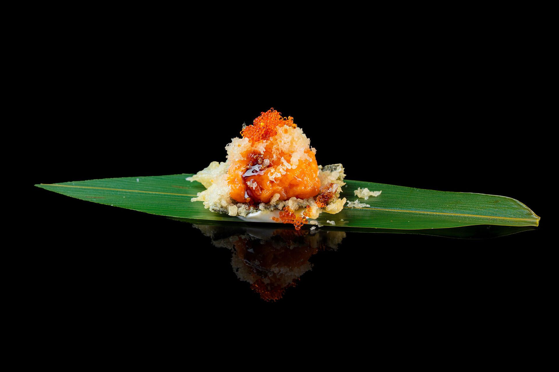Alga con Spicy salmone, philadelphia, tobiko e tempura