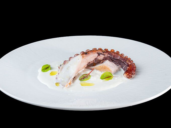 Polpo su salsa bianca (panna, latte, caciocavallo) e olio d'oliva