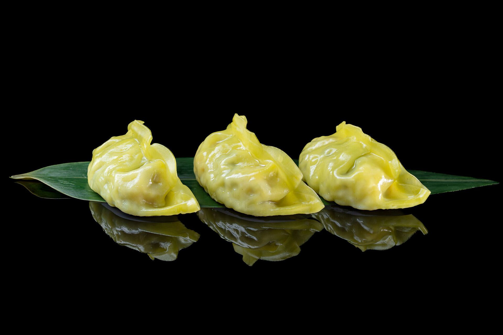 Ravioli al vapore realizzati con pasta agli spinaci e ripieni di verdure