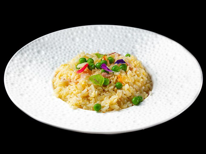 Riso saltato con uovo, piselli e prosciutto