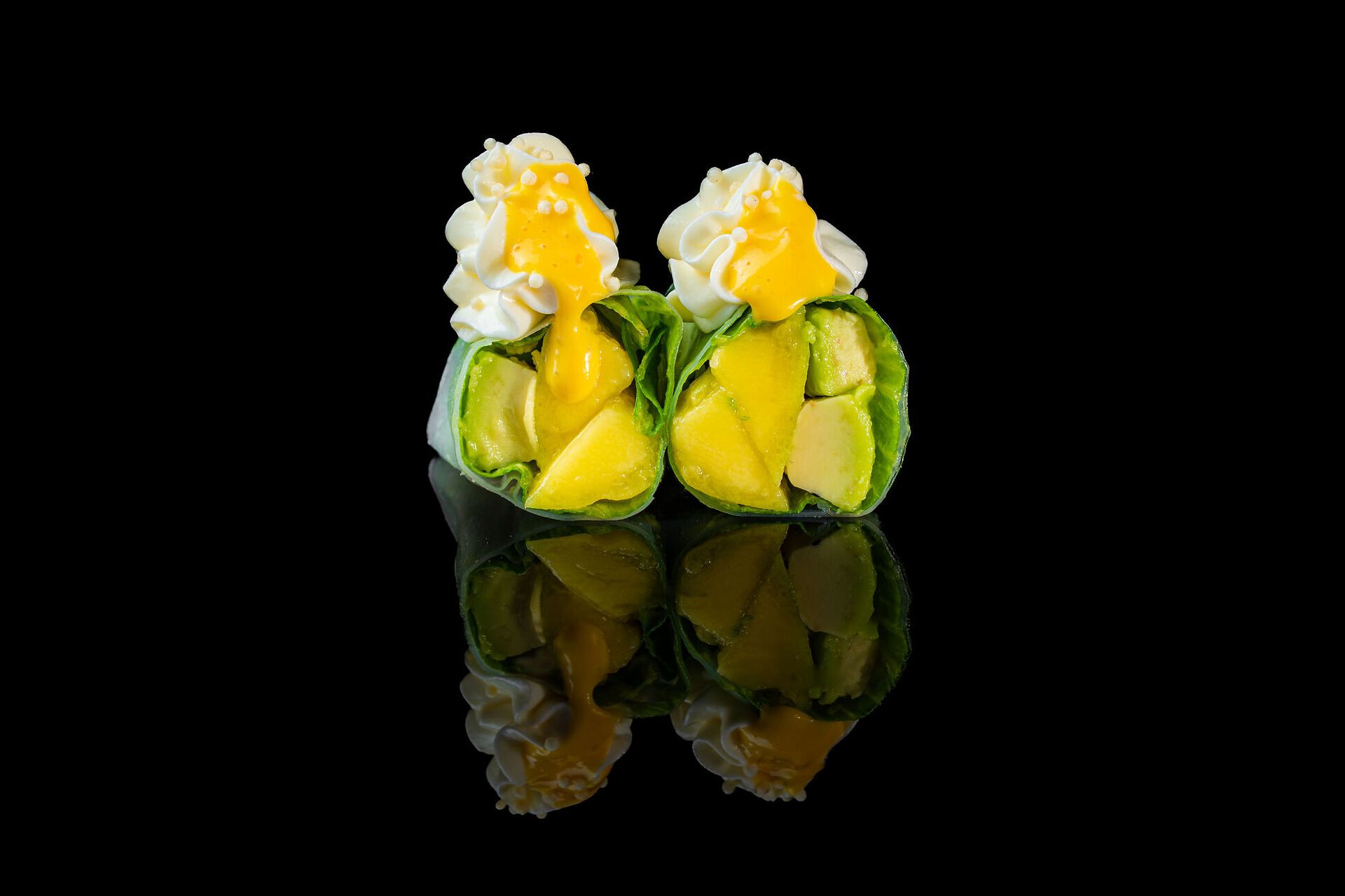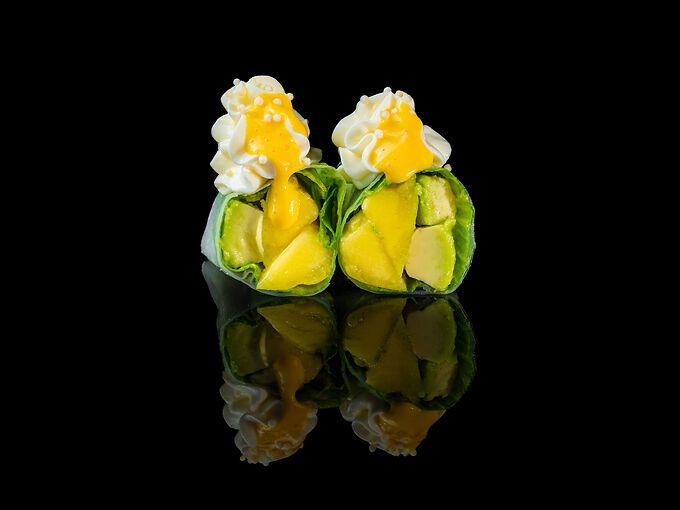 Involtini freschi vietnamiti con philadelphia, insalata mista, avocado, mango, salsa avocado
