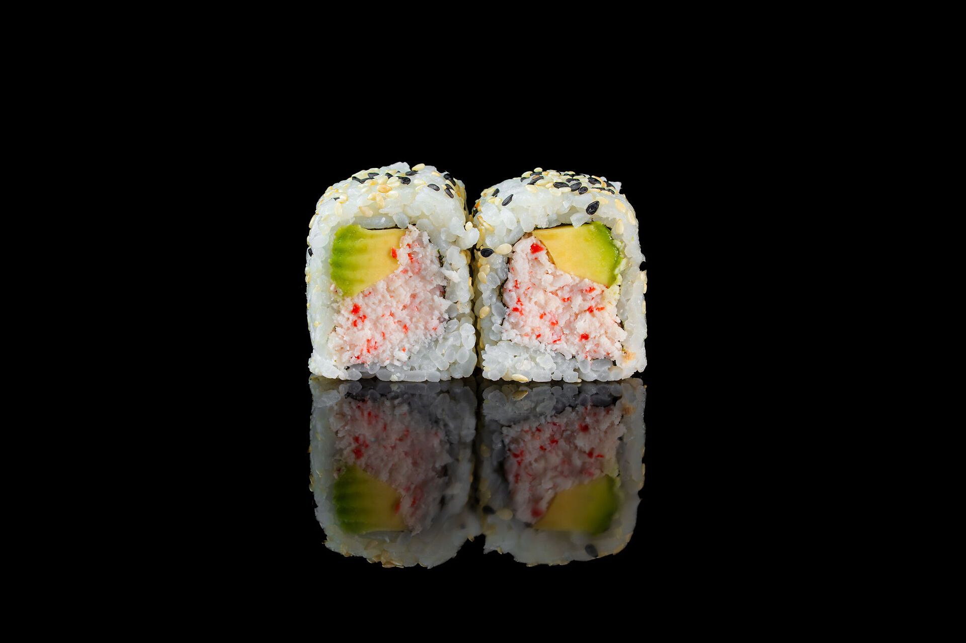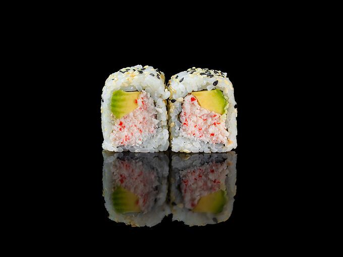 Surimi di granchio, maionese, tobiko, avocado e sesamo