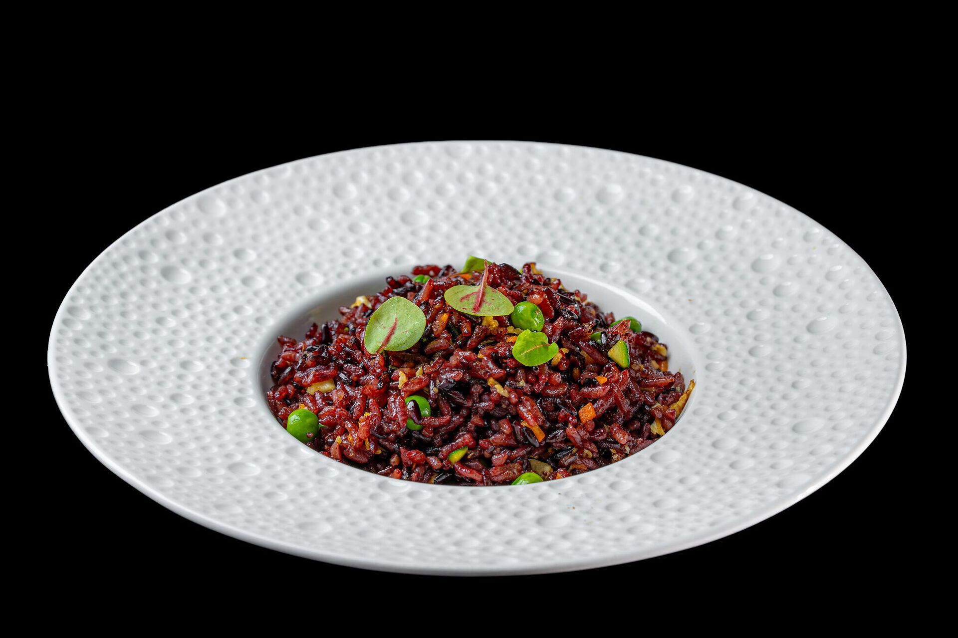 Riso nero saltato con uovo e verdure miste